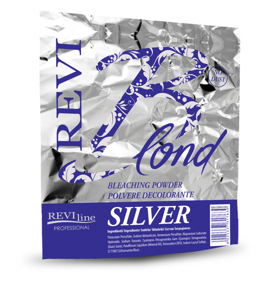 “silver” bleaching powder with no dust, rich in high-quality ingredients and blue-violet pigments resulting in optimum decoloring in any technique (streaks, bleaching, highlights, etc.), treating hair gently, without any orange or yellow colour hues.